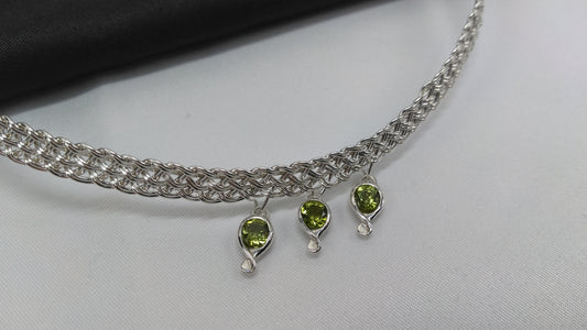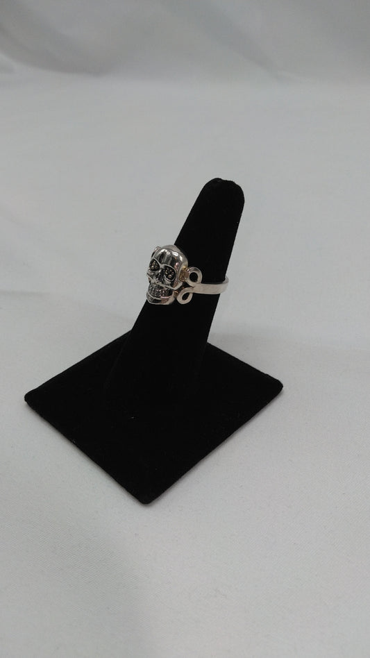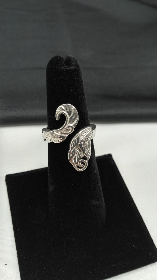 Vine and Leaf Adjustable Crochet Ring in Silver
