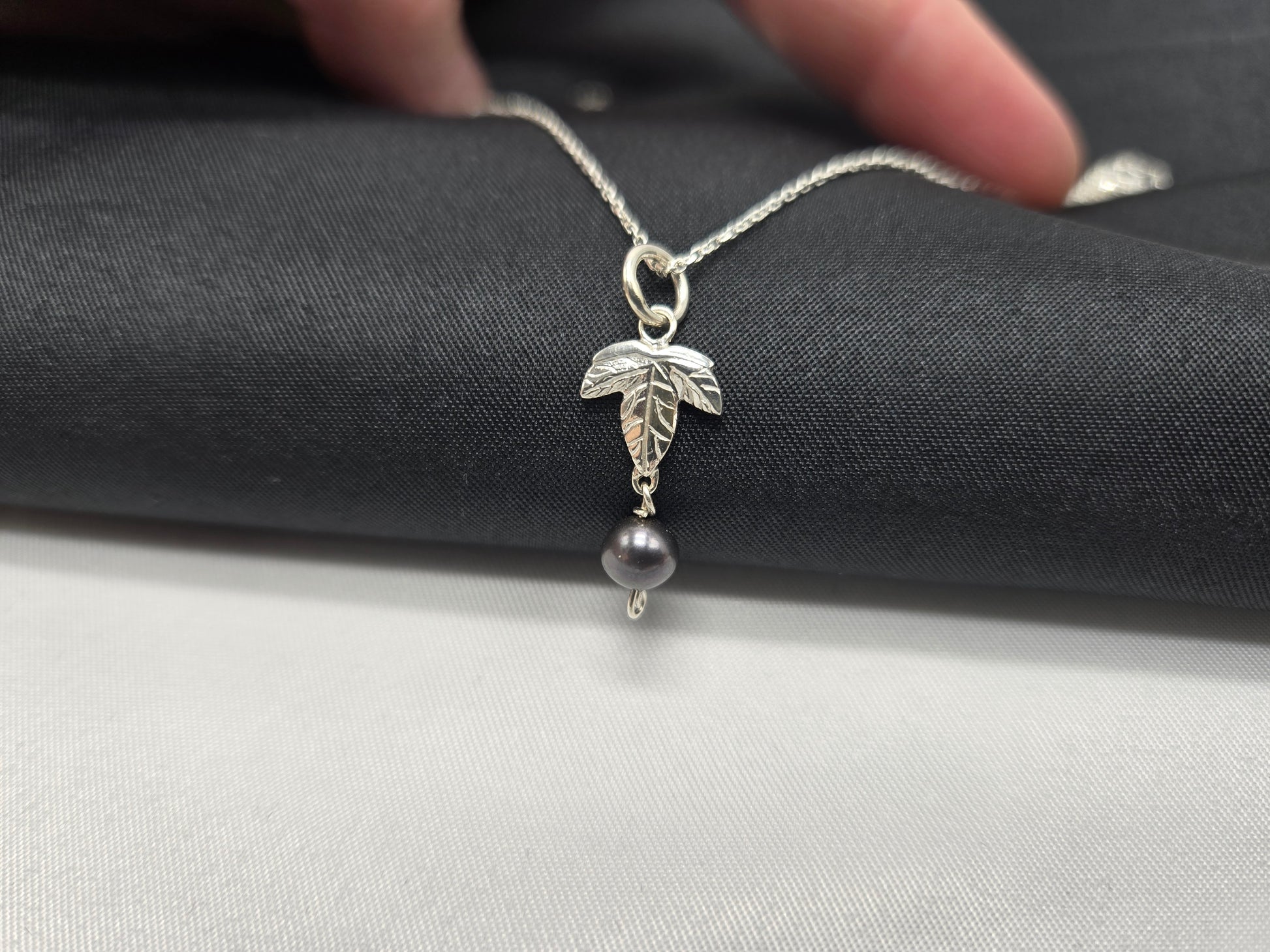 Ivy Leaf Necklace with Single Pearl in Sterling Silver